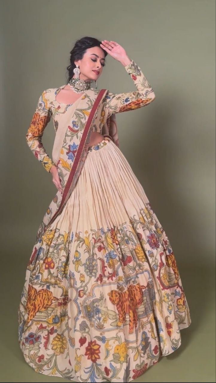 Harshvi Kalamkari Chent Lehenga Choli by Navrang